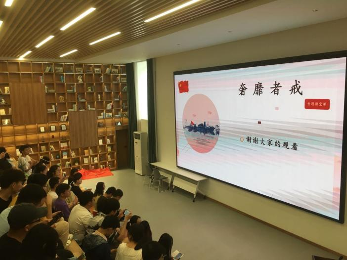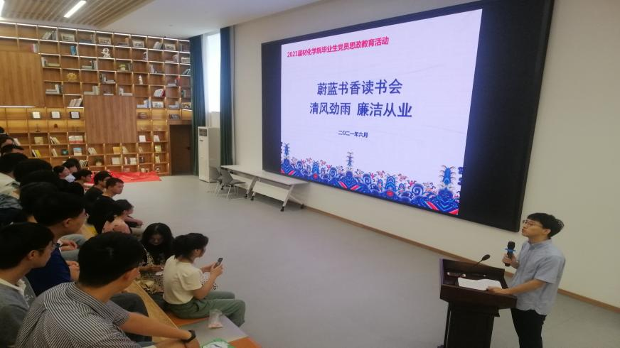 在云创小镇路演大厅举办了毕业生党员思政教育活动暨蔚蓝书香读书会——清风劲雨,廉洁从业。本次活动由研究生无机材料党支部承办,旨在进一步加强毕业生党员的党史党纪党规、法纪法规教育,牢筑廉洁从业思想道德防线,深化“不忘初心、牢记使命”主题教育成果。