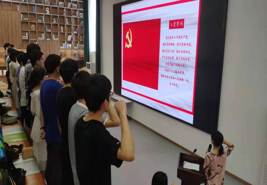 最后,大家一起重温入党誓词,以铿锵的言语,满腔的激情,坚定自己的理想信念和党性认识,牢记入党初心和使命。