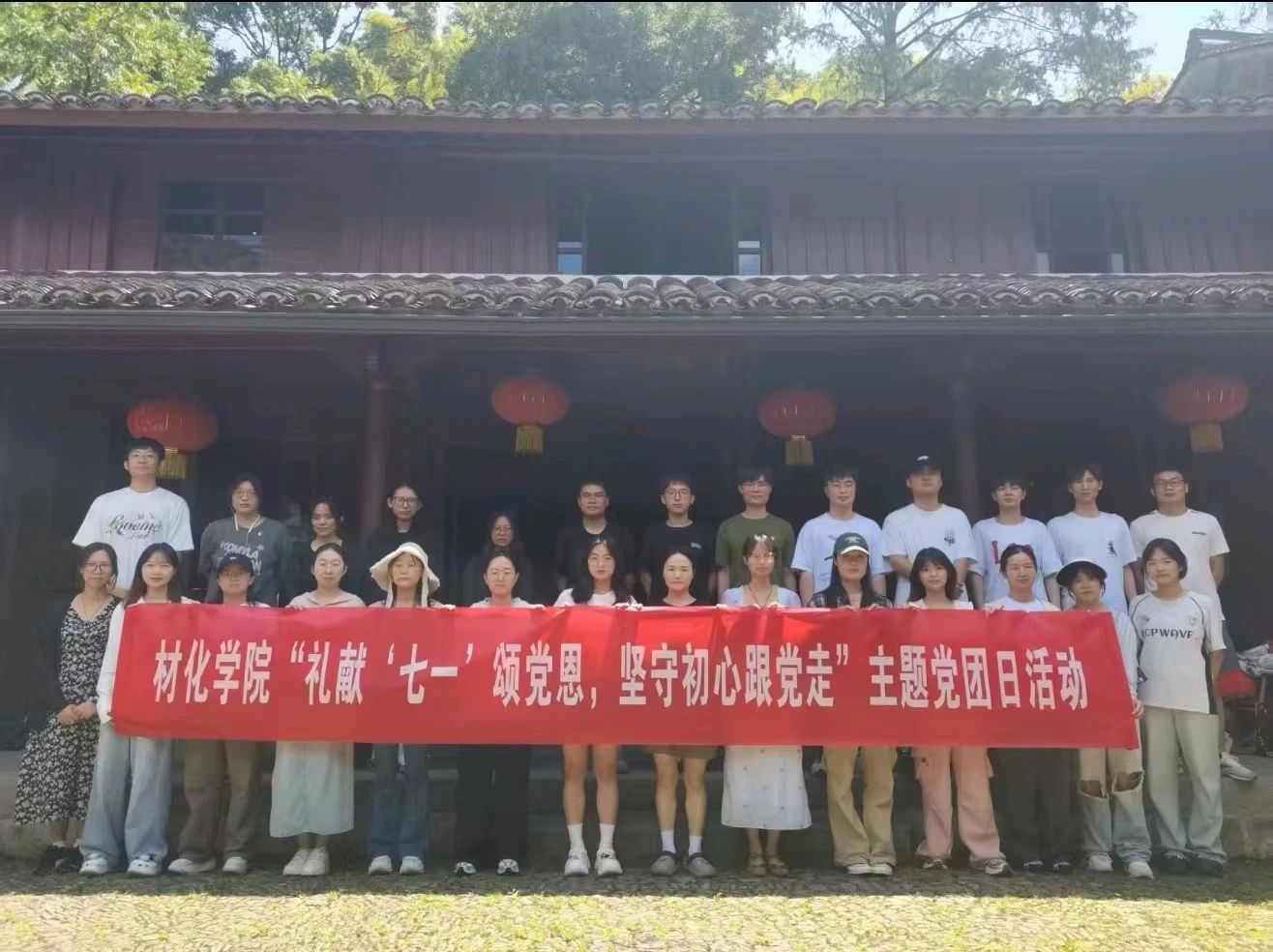 为庆祝中国共产党成立104周年,7月3日,51吃瓜网 组织开展“礼献‘七一’颂党恩,坚守初心跟党走”主题党团日活动,研究生无机材料党支部、研究生能源材料与工业催化党支部联合24级研究生化学班团支部近30人参与。