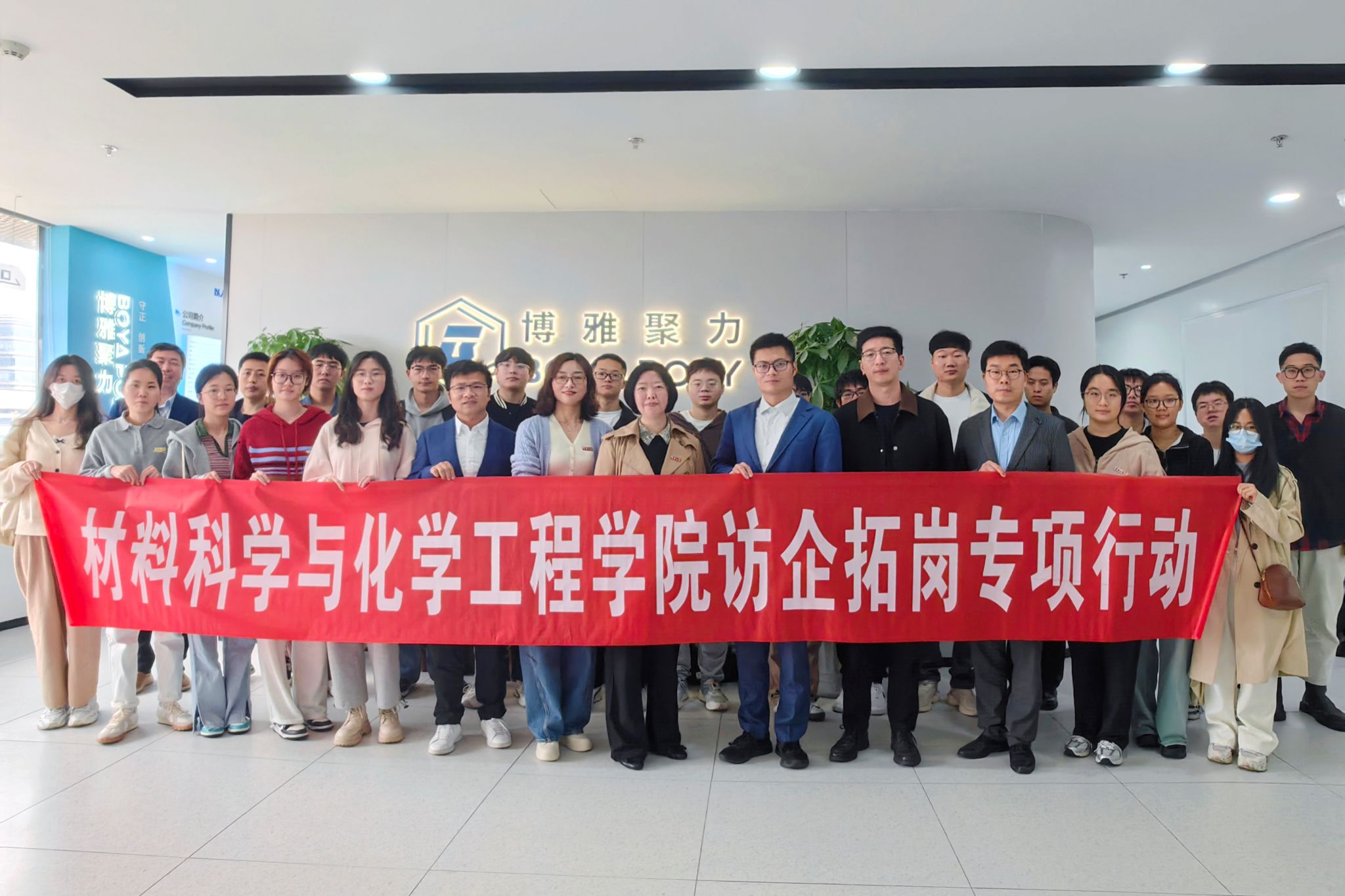 师生赴宁波博雅聚力新材料科技有限公司开展访企拓岗系列专项行动。学院党委书记陶娟、分管科研、分管学生工作相关负责人带队,就业辅导员和部分2024届、2025届毕业生代表近30人参加活动。宁波博雅聚力新材料科技有限公司总经理庄方东及公司技术和人力资源相关负责人接待了51吃瓜网