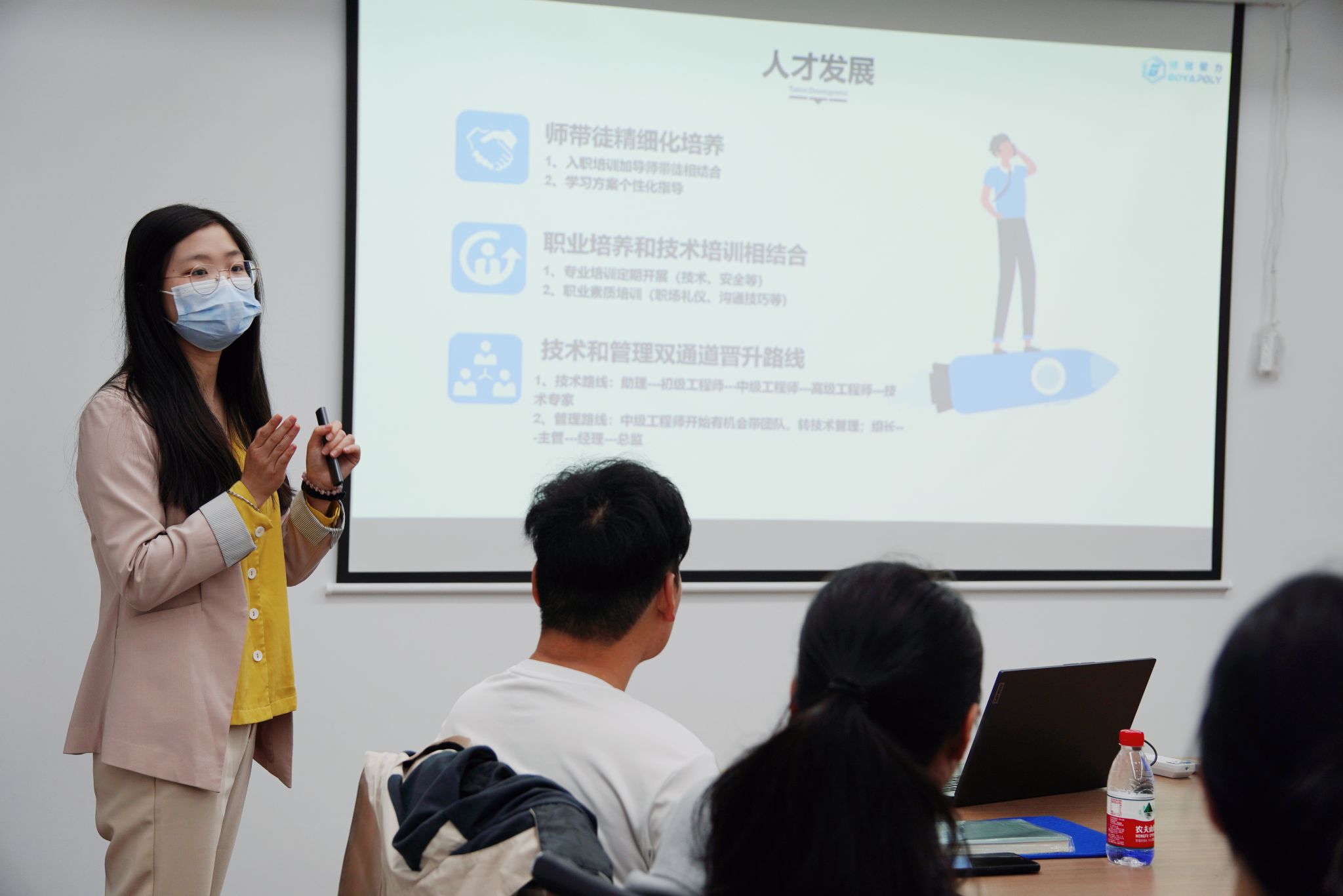 学生。公司负责人与学院领导班子进行热烈座谈,在学生就业创业、全面有效开展产学研合作、加强实习基地建设、联合开展专业课程建设、提升工程硕士实践技能培养水平等方面进行了深入交流,并达成初步合作意向,为紧密对接校企需求、促进工程类人才培养以及毕业生高质量就业等方面夯实了工作基础。公司人力资源部相关负责人和学生代表的深入座谈也同步进行。公司人力资源部相关负责人详细介绍了公司的总体架构、员工晋升体系、招聘岗位需求、薪资待遇、生活配套以及简历投递和面试流程,研发部相关负责人介绍了公司总体研发情况和研发人员的培养成长体系。学生代表们围绕公司研发项目与自身学习科研方向的契合度以及公司对毕业生的能力素养要求等方面进行深入交流,现场气氛热烈,学生表示打开了思路、了解了产业,有助于更有针对性地提升专业和综合素质,更清晰地规划学业和职业发展,受益良多。