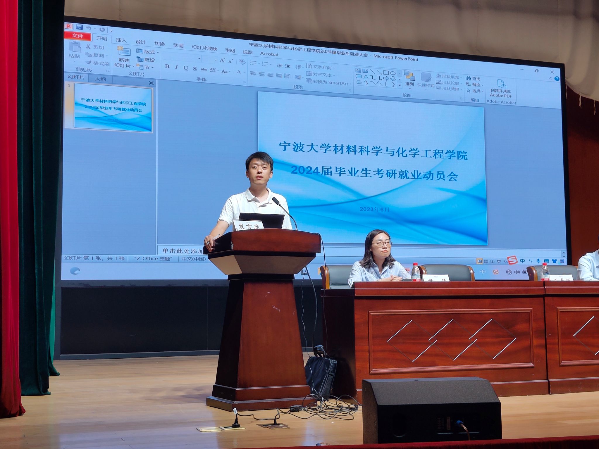 2024届毕业生考研就业动员会在忻元甫报告厅举办,学院院长丁传凡、副院长赵传壮、党委副书记尹慧、优秀校友企业康龙化成(宁波)新药技术有限公司人力资源总监王春颖出席会议。学院负责就业工作辅导员和2024届全体毕业生参加了此次动员会。会议由党委副书记尹慧主持。
