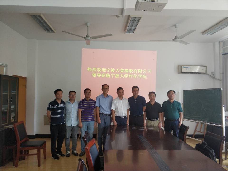 2019年9月20日上午,在学校地方服务处领导带领下,宁波天普橡塑有限公司尤建义总经理偕同宁海县科技局陈才能副局长一行四人来我院寻求合作机会,学院副院长韩磊老师和高分子系王宗宝老师等参加了此次对接会。