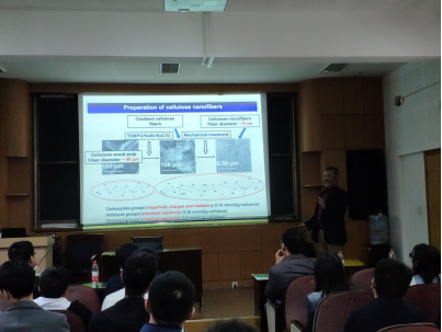 210会议室作了“Nanocellulose Technologies for water purification(纳米纤维素的水纯化技术)”学术报告。Benjamin S. Hsiao教授针对目前水处理方法的低效、价格昂贵等弊端,开发出一种天然纤维素的氧化处理的方法,所制备的纳米纤维素具有较高的比表面积,对污染水中的重金属具有高效的吸附能力。此方法具有制备过程简单便捷、能耗较低和环保等优点,而且制备纳米纤维素所采用的原料为农作物废弃物,如秸秆和高粱杆等,是真正意义上的变废为宝,因此具有很高的应用价值。Benjamin S. Hsiao教授全面解析了纳米纤维素的制备及其应用研究,深入浅出,引起了与会听众极大的兴趣,丰富了大家对纤维素方面理论知识。51吃瓜网