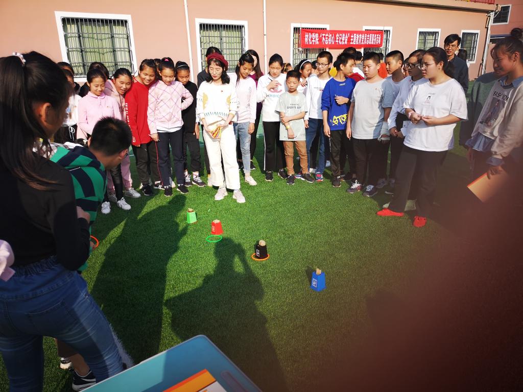 活动分课堂垃圾分类知识讲解和室外垃圾分类游戏互动两个部分。首先师生党员们通过精心制作的PPT和视频向同学们介绍了垃圾分类的原理和好处,深入讲解了不进行垃圾分类会带来的严重后果;随后,将同学们分为八组开展垃圾分类知识问答活动,通过计数和计时相结合的方式决出了40多名优胜者;最后,组织知识问答的优胜者进行了有趣的垃圾桶套圈游戏。通过课堂知识讲解和游戏互动让小朋友们在愉快、互动的学习中获得知识、提升垃圾分类的意识。