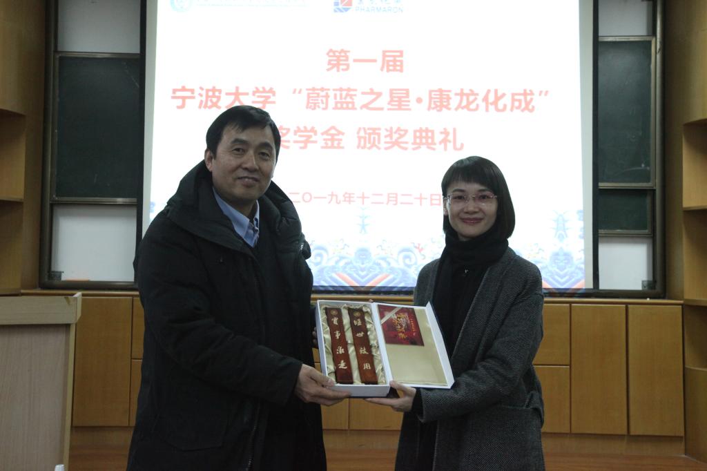 典礼上,我校发展联络处副处长姜煜洌向康龙化成新药技术有限公司嘉宾赠送学校礼品表示感谢。典礼最后,付建民博士向在场获奖学生表示祝贺,他讲述了设立康龙化成特色班及奖学金的初衷,讲述了楼柏良博士创业及康龙化成的发展事迹。他勉励在场同学们再接再厉,争取取得更大的成绩,在学校学到的知识应用社会服务中。付博士的发言获得了现场同学的热烈响应。