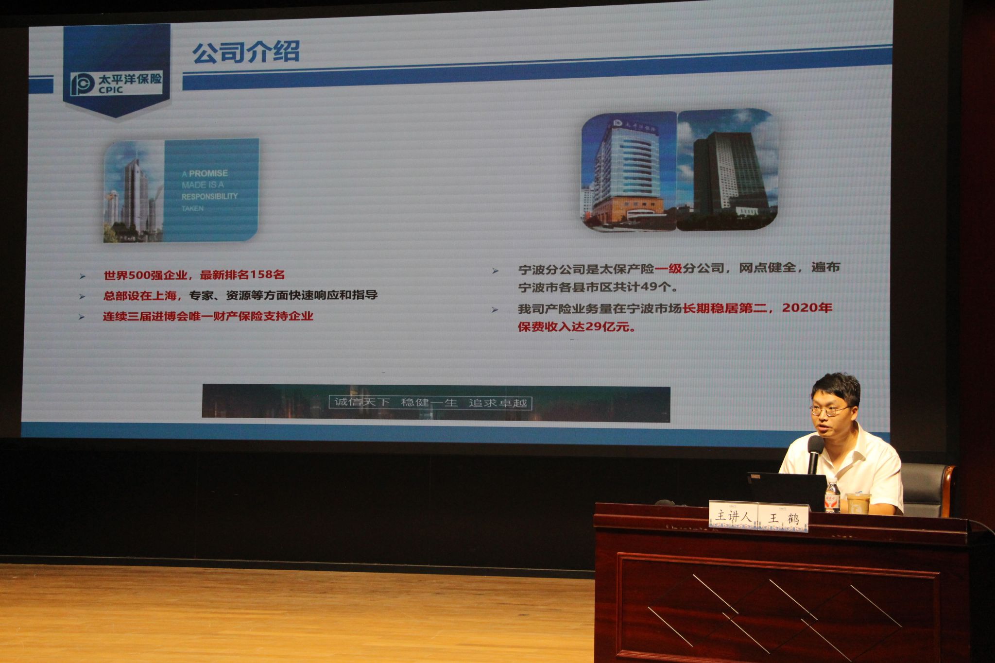 在忻元甫报告厅面向2025级研究生新生开展保险政策宣讲会。本次活动作为新生始业教育的重要一环,特邀中国太平洋财产保险股份有限公司宁波分公司专员王鹤与学院辅导员刘毅联袂主讲,为新生深入解读大学生意外伤害综合保险和宁波市大学生医保政策。