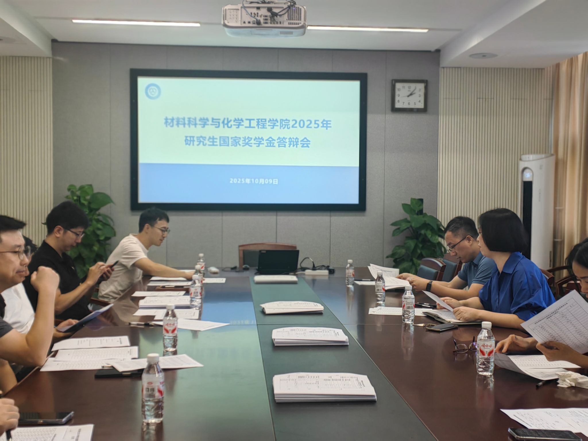 在北区逸夫材化楼北楼1227会议室成功举办了2025年研究生国家奖学金答辩会。学院领导、学位点负责人及研究生导师代表等组成评审委员会,共同对入围候选人进行综合评审。