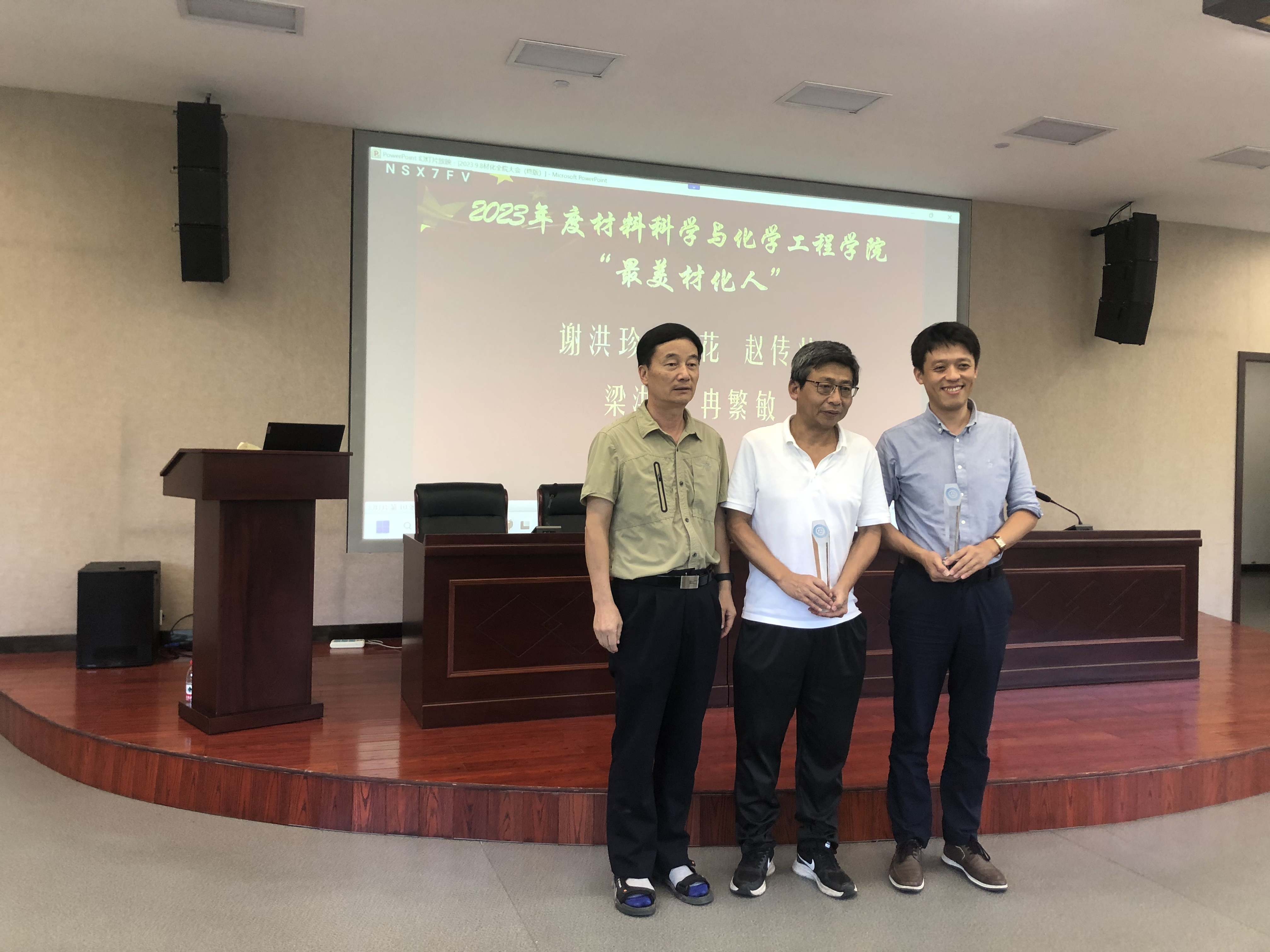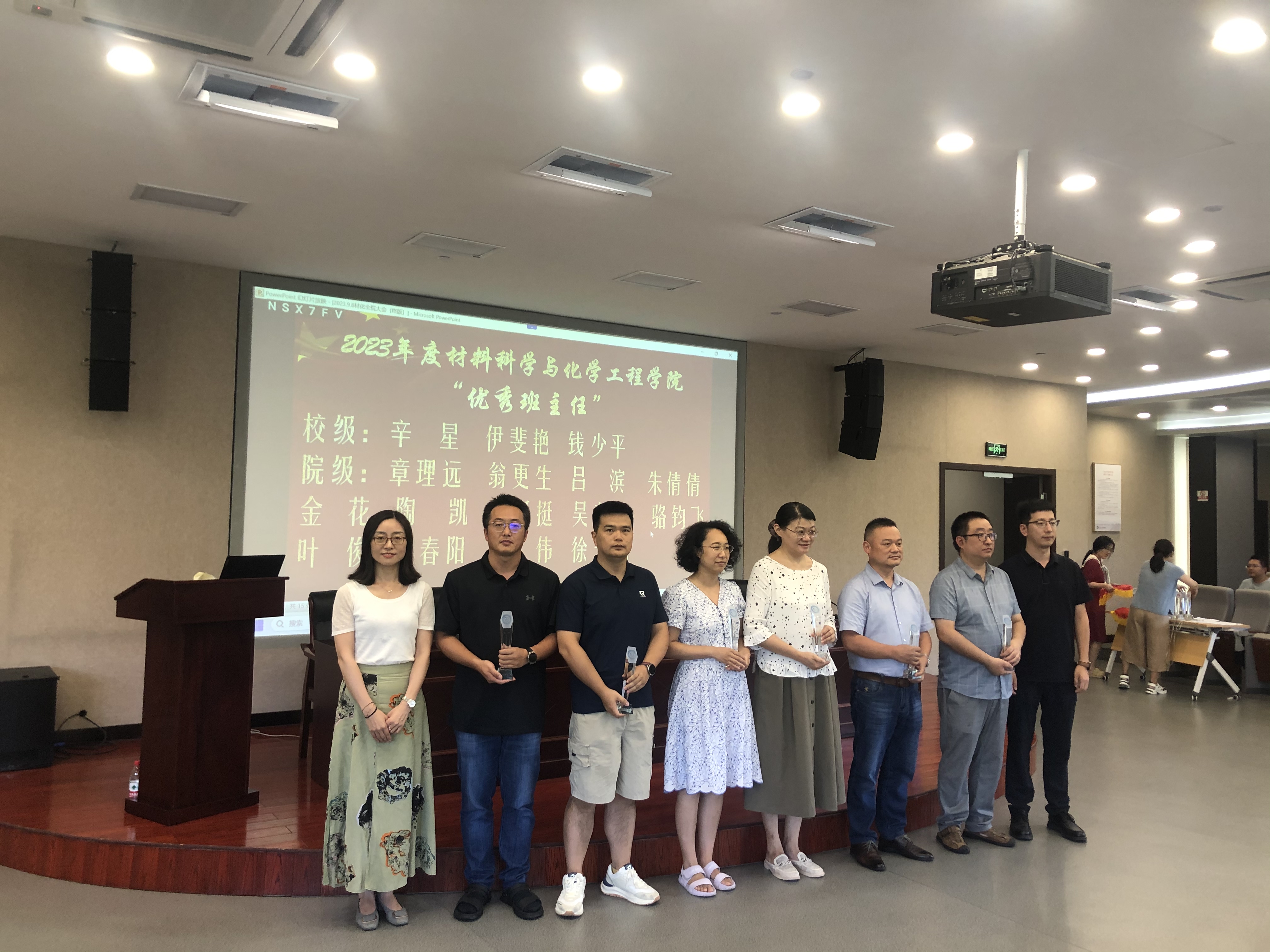 ,转变角色适应新要求,在学院能够有新担当、新作为。院长和书记分别为新入职教师别上校徽,送上鲜花。随后,一同回顾了2023年上半年教职工校级以上荣誉获得情况,并对2023年度的教师锋领党员、优秀班主任、最美材化人等30余位教师进行了表彰,学院领导为他们颁发奖杯。