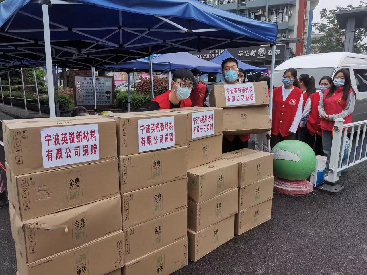 的“锵锵五人行”。他们迅速对接学院校外物资运送小分队送来的物资,并及时分发至同学们手中,成为疫情物资运送战线上一道别样的风景。
