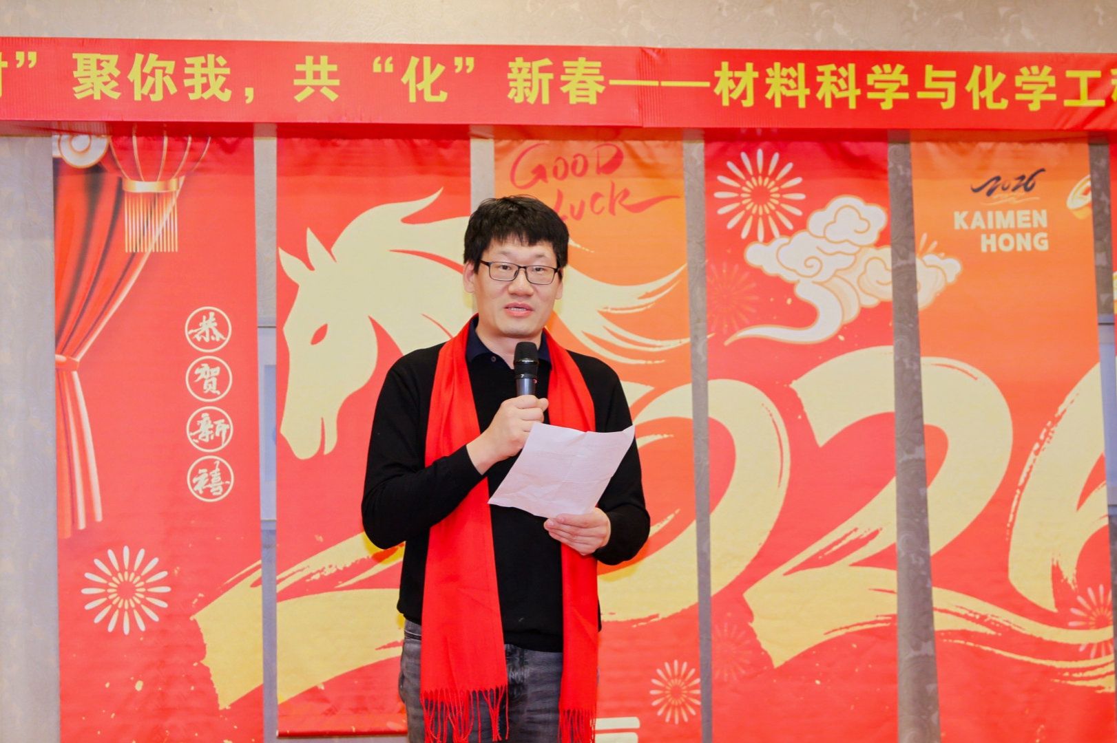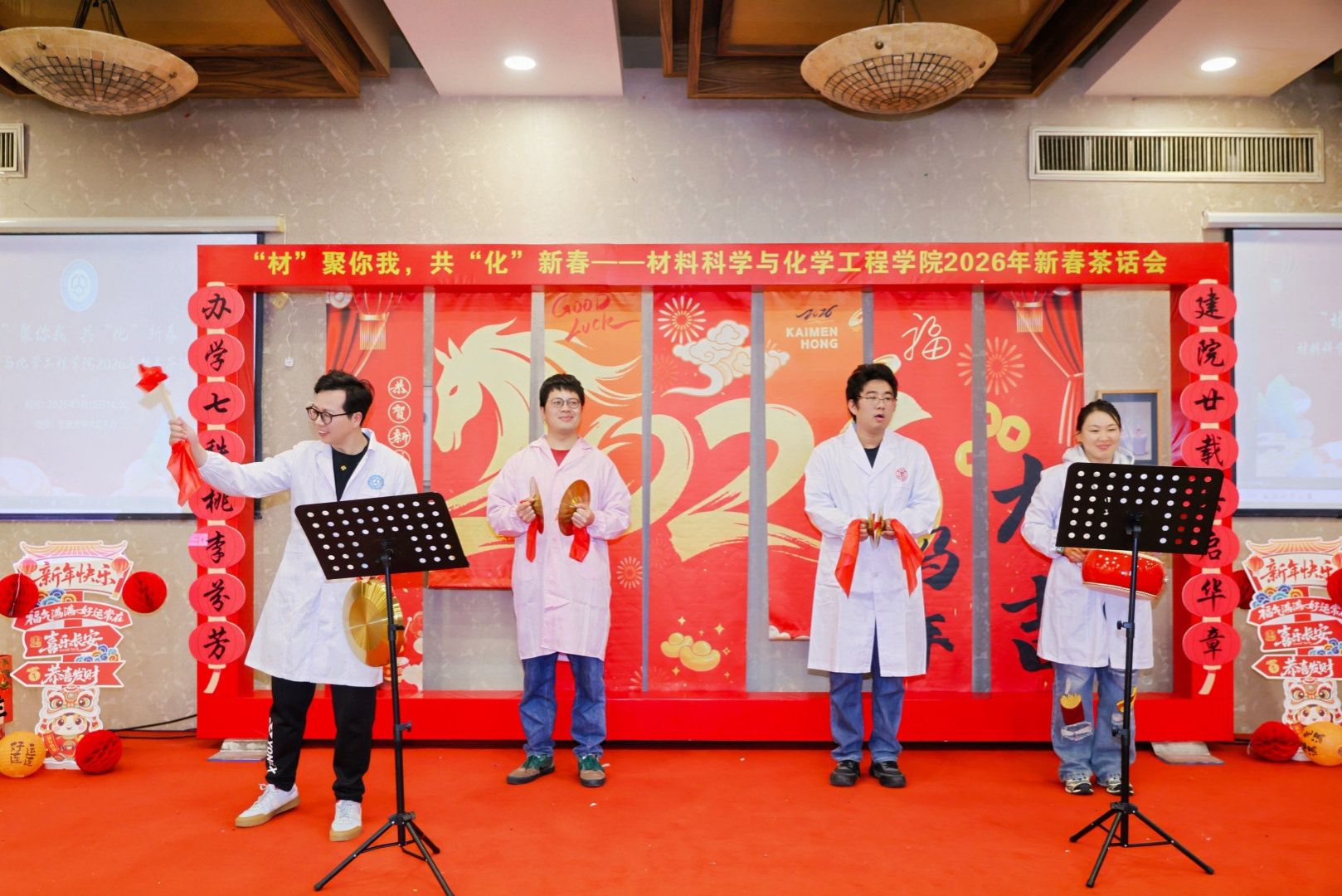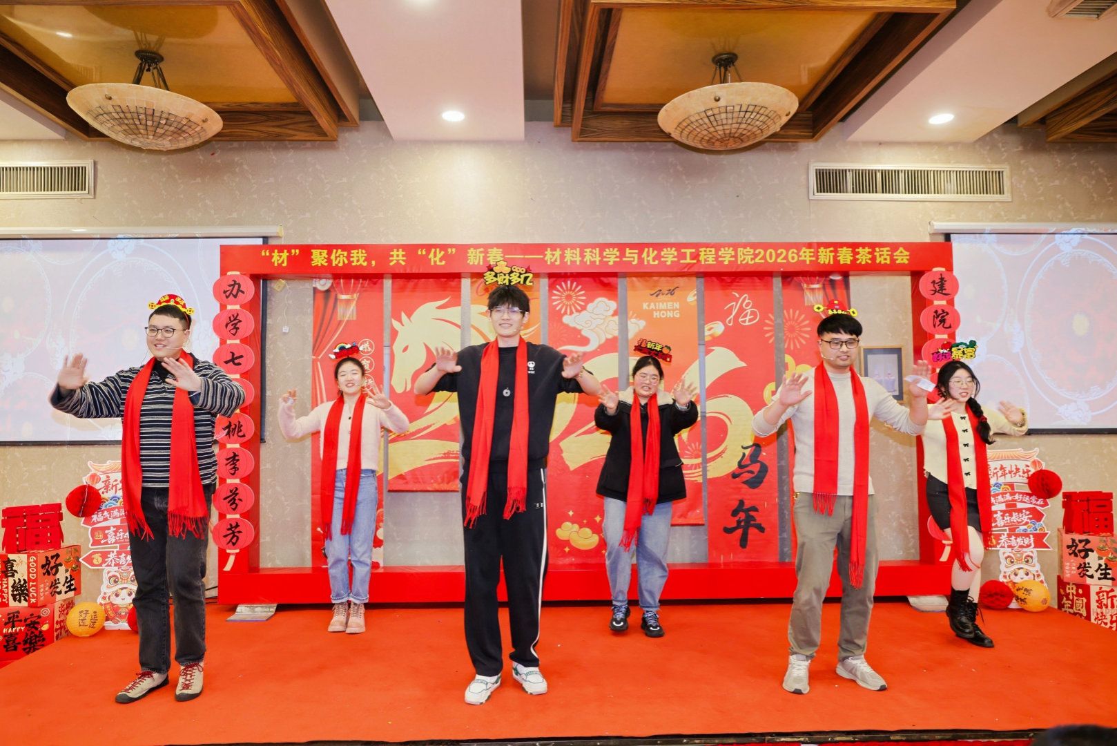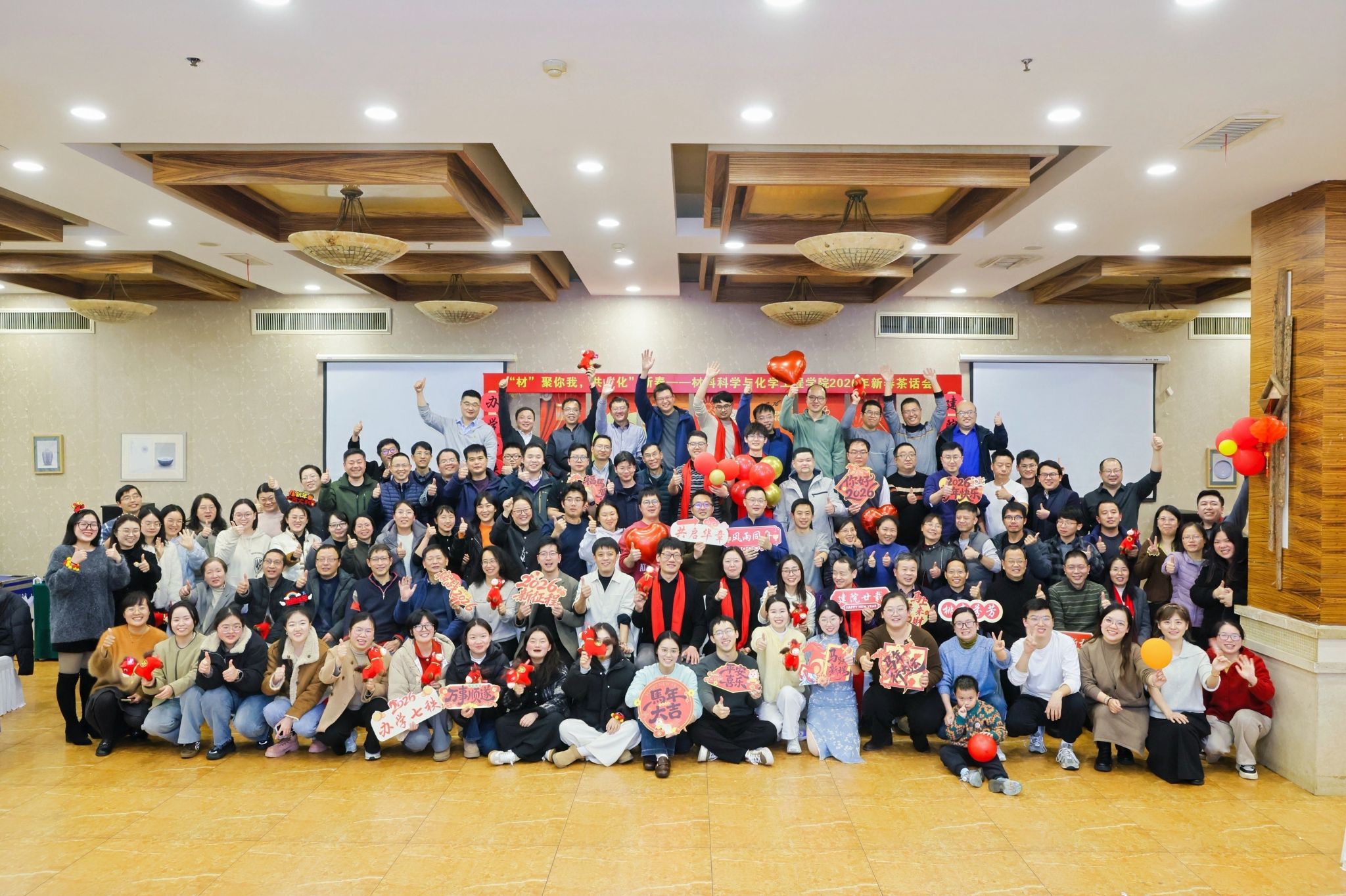 “‘材’聚你我,共‘化’新春”2026年新春茶话会在宁大宾馆六合礼圆满举行。学院领导班子、全体教职工及离退休教师代表欢聚一堂,畅叙情谊、共话发展,在温馨祥和的氛围中庆祝建院20周年、喜迎甲辰新春。