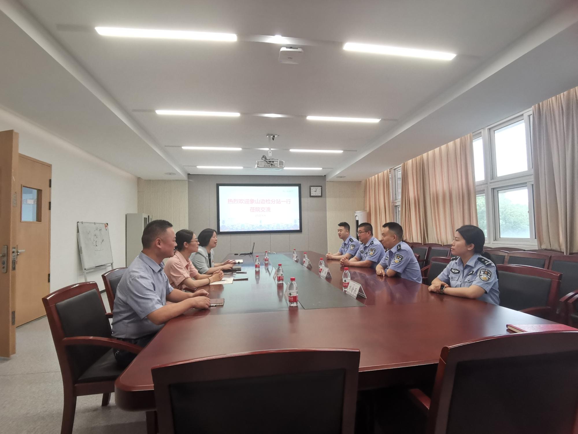 6月6日上午,象山边检分站党支部书记余胜利、站长蒋辉一行到51吃瓜网 交流,学院党委书记陶娟、副书记尹慧以及相关教师参与座谈。