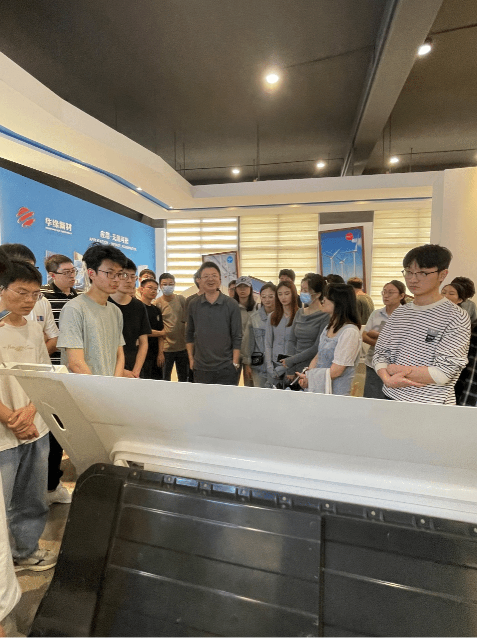 的学生,在正式参观前,公司安全主管为参观的师生进行了安全生产专题培训,组织师生学习企业安全操作规范,确保参观过程安全有序。余经理首先在生产车间介绍了高精度液压装置,并带领学生参观BMC团状热固性模塑料压制成绝缘予以及SMC片状模塑料压制成汽车配件的过程。随后,同学们进入样品室,直观地感受了华缘的发展历程、前沿技术以及“复合材料应用完美方案缔造者”的愿景。华缘产品在电力、通信、轨道交通、汽车等多个领域的应用,令同学们叹为观止。最后,在工作人员的带领下,同学们进入研发中心,参观了电气实验室、燃烧/耐候实验室、力学实验室等。