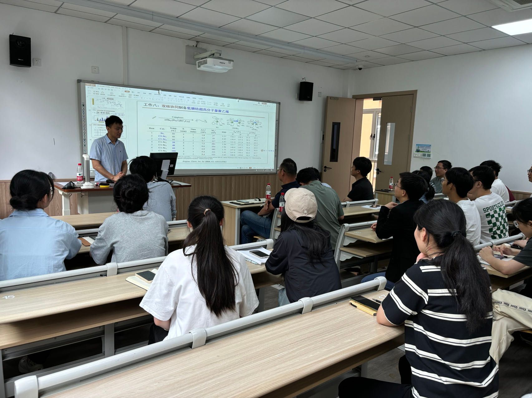 李世辉研究员介绍了催化剂在高分子材料合成中的重要作用和发展历程,高端聚烯烃合成中的难点,稀土金属催化剂的设计理念。讲解了多种结构的稀土金属配合物在极性乙烯基单体均聚以及与乙烯共聚合方面的独特性质,如优异的极性基团耐受性、高立构选择性和区域选择性、良好的单体插入率等,并深入分析了催化剂结构与性能之间的密切关系。