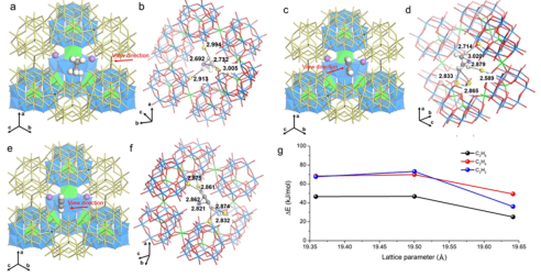 最后,基于ɛ-Keggin金属氧簇的ZOMOs具有超小微孔,孔隙可以在亚原子尺度通过改变材料的阳离子和结点金属得到调整,从而达到分离C2烃类,因此在C2烃类混合物的分离特别是高温分离中显示出很大的应用潜力。