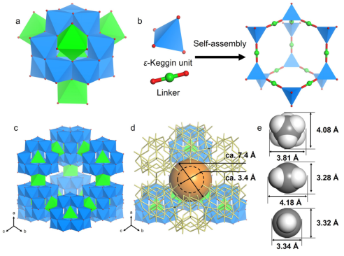 的张祯歆教授、李砚硕教授设计了一种基于ε-Keggin金属氧簇与金属离子连接的金属氧化物分子筛。由于材料的结构主要由金属氧八面体组成所以可以命名为Zeolitic Octahedral Metal Oxides(ZOMOs)。该材料的结构在亚原子尺度的可调节性。通过调节结构,该材料对C2H6、C2H4、C2H2的表现出不同吸附性能,具有较高的理想溶液吸附理论(IAST)选择性。ZOMOs与C2H6、C2H4、C2H2具有较强且有差异的相互作用,因此可以在高温下对C2烃类进行分离。
