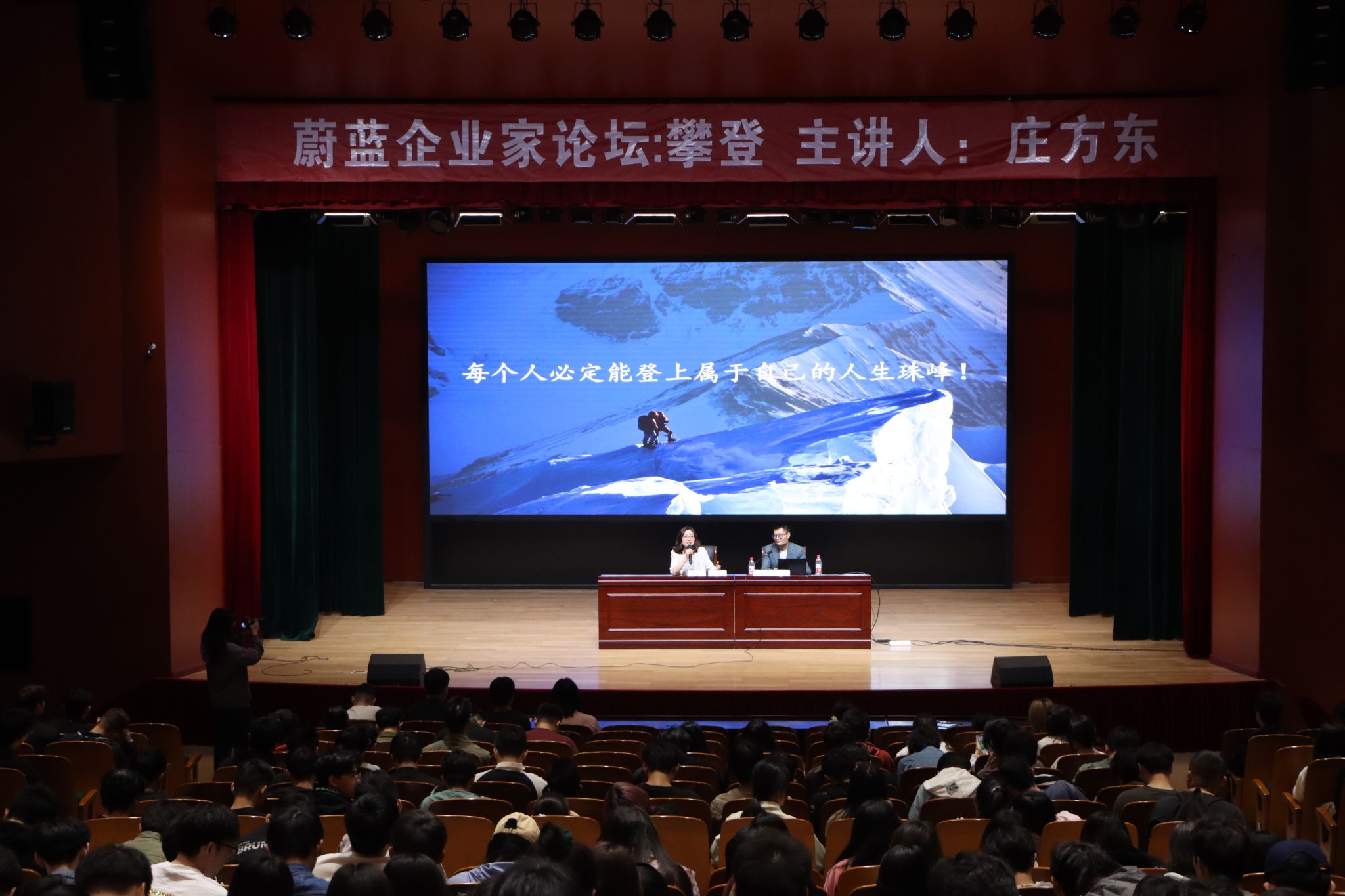 庄方东以攀登珠穆朗玛峰的经历开篇,向同学们分享了他个人的成长和创业之路。他详细描述了攀登珠峰的过程中所做的精心准备,特别是攀登从5100米到6000米,再到8000米直至顶峰的每一个关键点的挑战与收获。他强调,攀登珠峰不仅是对身体的极限挑战,更是对心灵的洗礼和精神的升华。正是这种攀登精神,支撑着他不断超越自我,追求卓越。