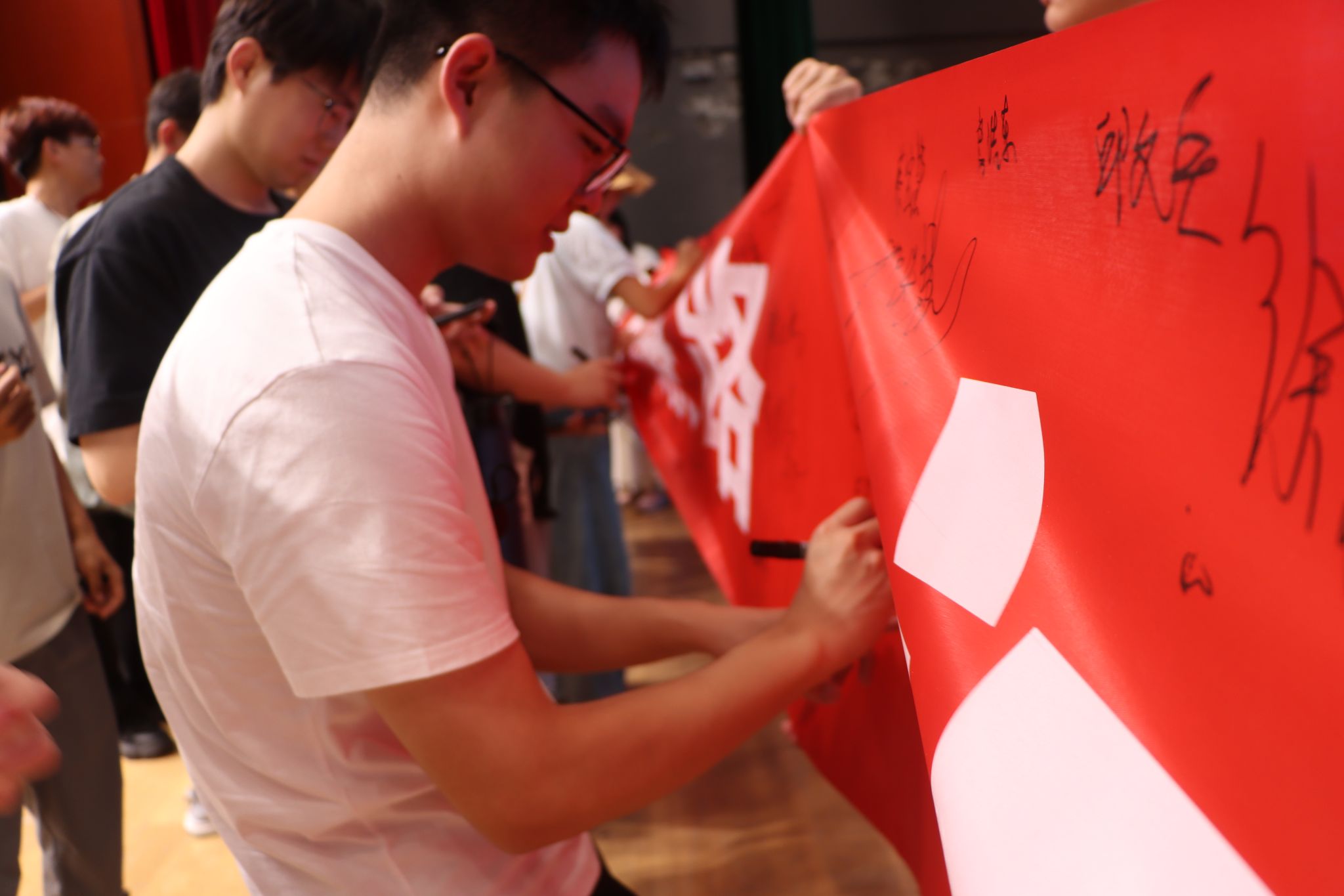 在讲座结束后,新生们在“启航新廉路,诚信护科研”的横幅上郑重签名,承诺尊重他人成果,对个人学术成果负责,对自身学术生涯负责,恪守学术诚信,守护学术道德。
