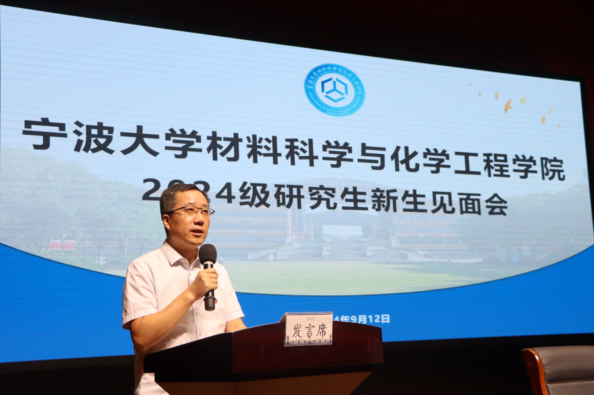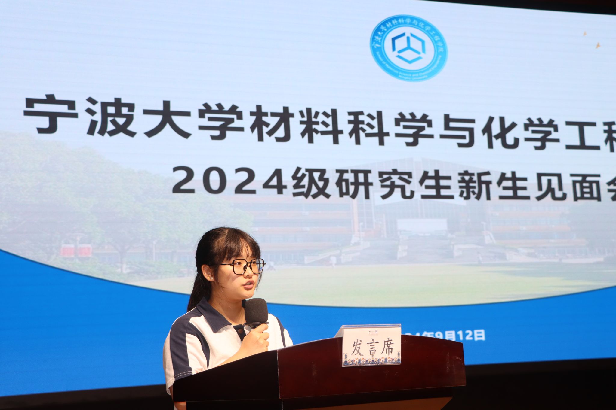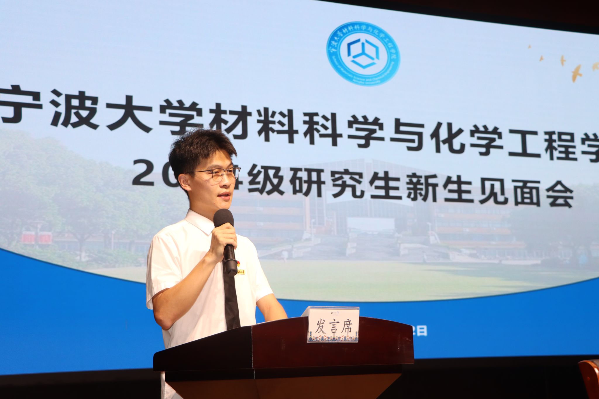 22级研究生材料1班的邢超伟作为老生代表发言,他从“坚定理想信念,激发时代新人的青年毅志”、“贯通学以致用,锻造为国奉献的青春力量”、“强化理论武装,激发时间淬炼的挺膺担当”三个方面,鼓励学弟学妹们传承“实事求是、经世致用”的校训,在青春的赛道上跑出属于宁大青年加速度.