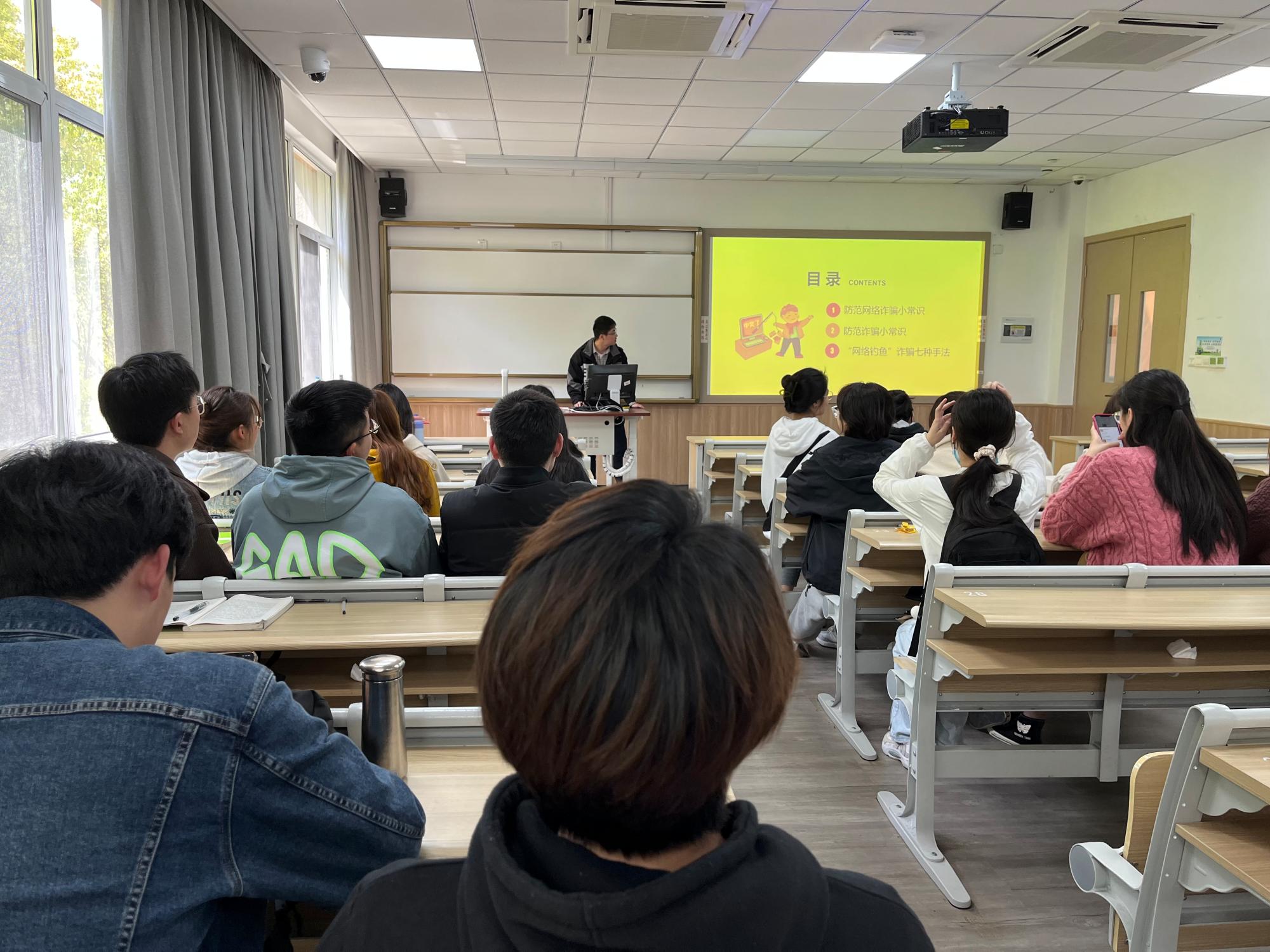 本次防诈骗宣传主要包括网络电信诈骗高发原因、诈骗的甄别方法及预防和应对措施等内容。在宣传过程中,班级舆情委员充分利用课前五分钟,创新方式方法,除放映相关ppt以外,还采用了视频播放、案例讲解等方式,多形式、多类型、多方位使同学们了解了网络电信诈骗的多种形式,同时,多样的案例也让同学们对诈骗手段也有了更深入的了解。