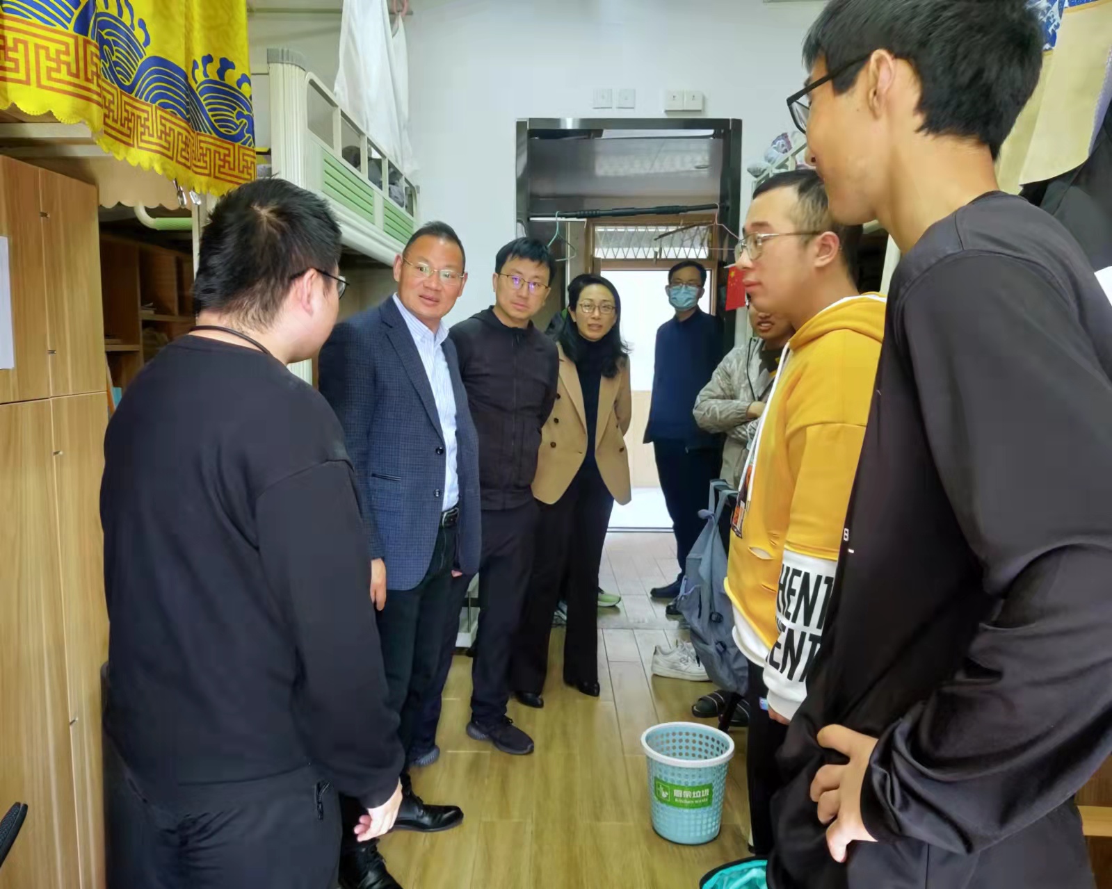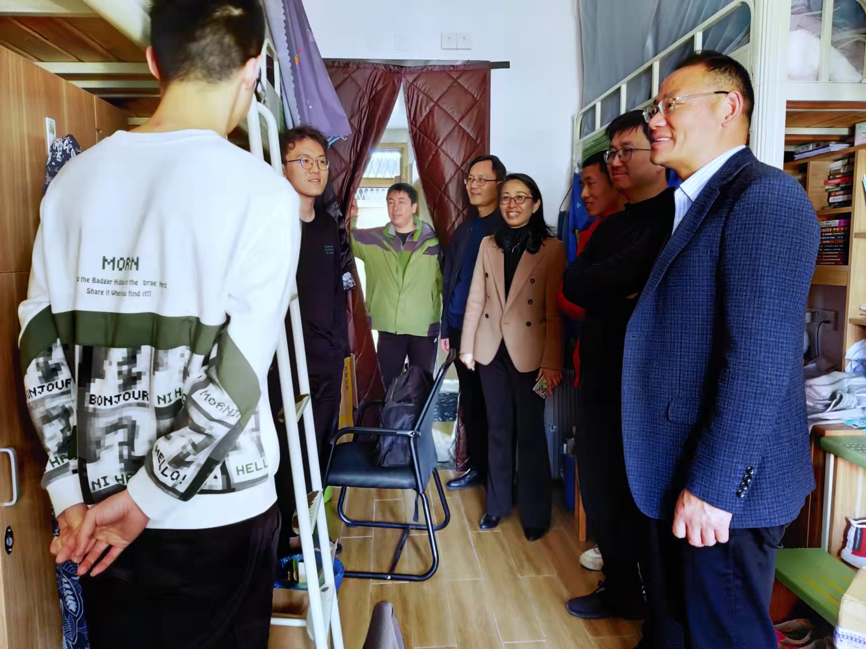 党委书记罗云杰、副院长韩磊、孙巍、党委副书记朱燕以及辅导员老师一行走访了北区学生宿舍。