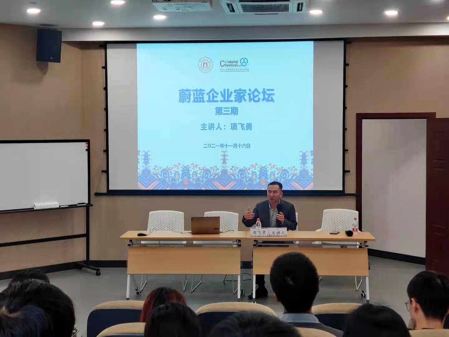 于北区报告厅举办优秀企业家论坛。本次论坛分为第三期和第四期,分别由肯特催化材料股份有限公司董事长项飞勇先生及卢米蓝新材料有限公司创始人陈志宽博士主讲,学院党委副书记朱燕老师主持,辅导员及100多名学生参加论坛。