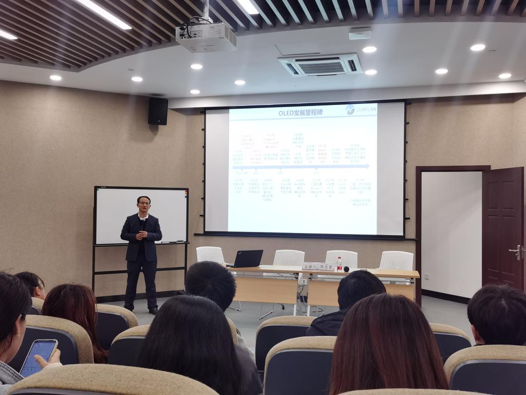 随后,陈志宽从研发与销售、专利布局、公司产品等方面,向同学们介绍了卢米蓝公司的基本情况,以及详细讲述了OLED产业未来发展态势,使同学们对目前面临的社会现状和问题有进一步的了解和认识。最后,陈博士也对现场同学的问题进行了解答。