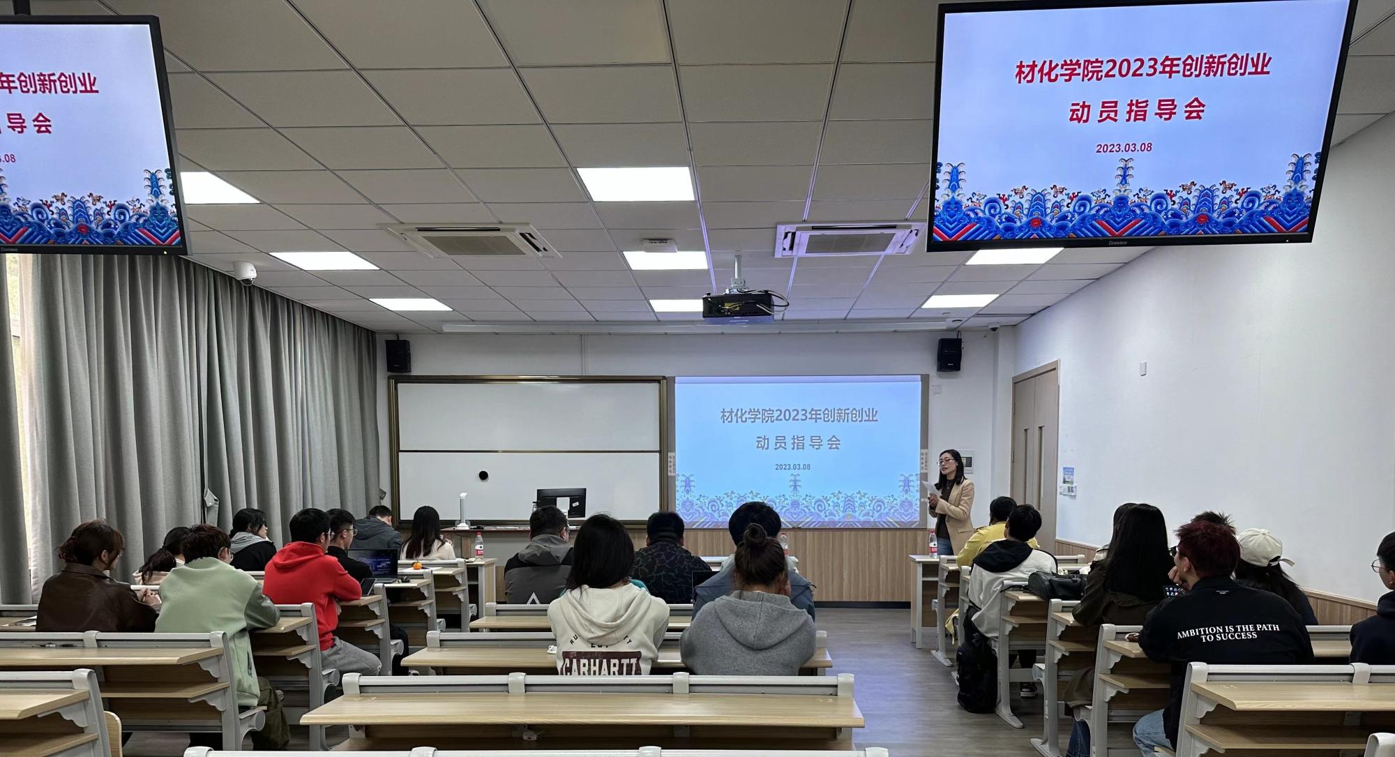 在北区3号楼202召开2023年创新创业动员指导会,学院双创竞赛团队学生及部分青年教师到场。