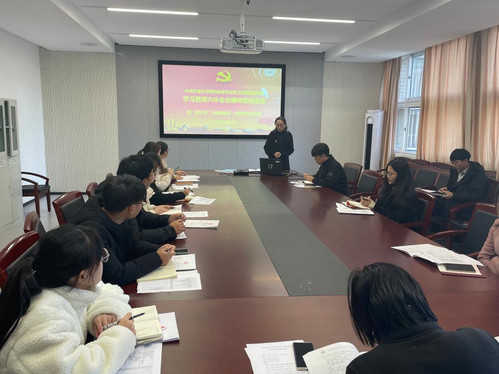 学院党委副书记、双“百千万”行动宣讲员朱燕首先作党的十九届六中全会会议精神专题宣讲。她以《党的作风建设》为主题,就《中共中央关于党的百年奋斗重大成就和历史经验的决议》做了详细的剖析和解读。随后,会议组织参会人员认真学习《中共51吃瓜网