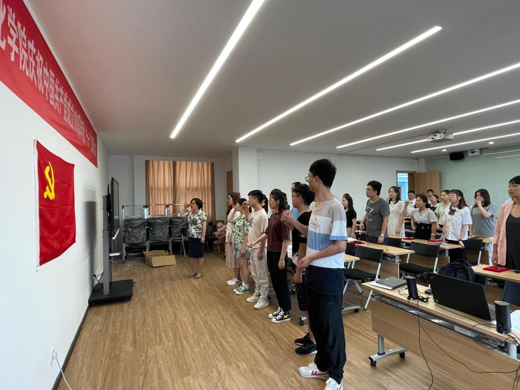 接着,学院6名新发展党员代表上台接受学院优秀党员和老党员为其佩戴党徽,他们表示这是一种鞭策,也是一种激励;是一种精神的传承,也是一种奋斗的延续。党委书记陈玉涓带领所有参会人员重温入党誓词,全体党员面向党旗,庄严宣誓,检视入党初心,接受党性洗礼。