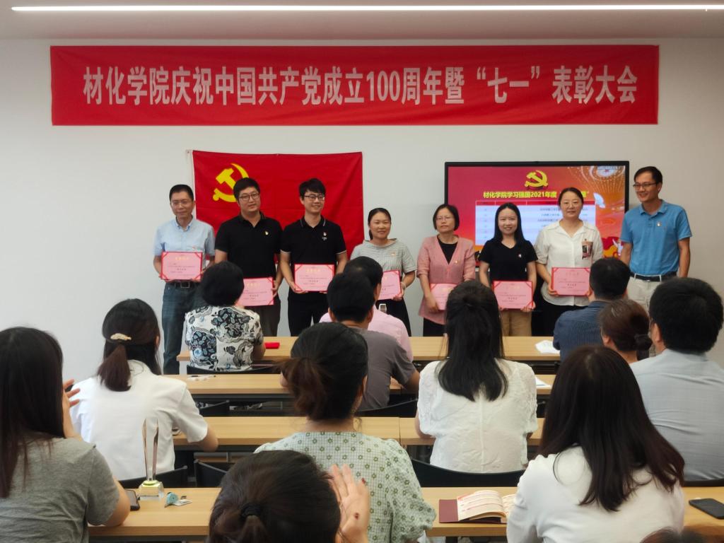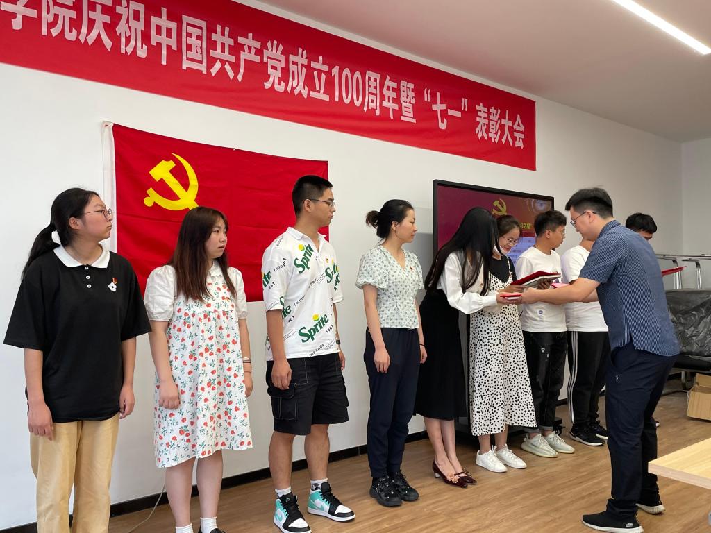 在北区1号实验楼1225教室召开庆祝中国共产党成立100周年暨“七一”表彰大会。学院党员领导干部、全体党委委员、党支部书记及新发展党员等参会。大会由院党委委员韩鸿儒主持。