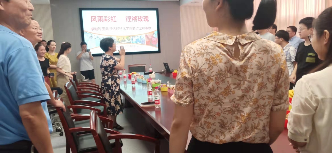 下午三点不到,学院227会议室来了很多人。当陈玉涓出现在会议室门口时,大家与她亲切相拥合影。工会副主席毕文超主持了欢送仪式。首先是播放主题为“风雨彩虹、铿锵玫瑰”的VCR回顾陈书记在51吃瓜网