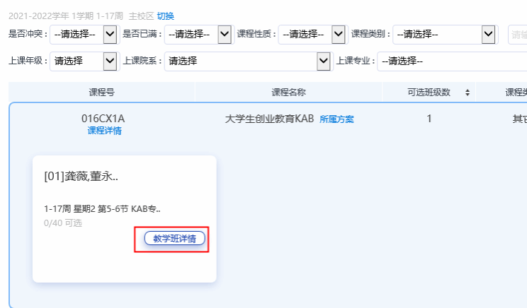 3.对于某些有特殊选课要求的课程会在选课系统中的“教学班信息”中做出说明,具体界面如下: