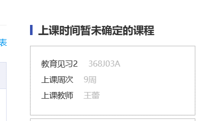 4、同学进入“我的课表”app查询课表的时候看到右上角有“上课时间暂未确定的课程”(如下图所示),此类课程具体上课时间、地点不在系统中体现,请选了此类课程的同学务必要联系该课程所在学院的任课老师,明确具体的时间和地点。